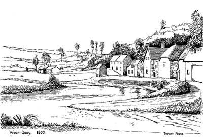 Weare Quay is simply a part of Weare Giffard village. In earlier times, the quay played a major part in the life of the village since the river could be navigated from Bideford down to Weare Giffard. Later, with the building of the Rolle Canal, boats could carry goods down further to Great Torrington. For 32 years, Robert Brinsmead was the managing clerk on the Canal. See the article in The North Devon Journal.